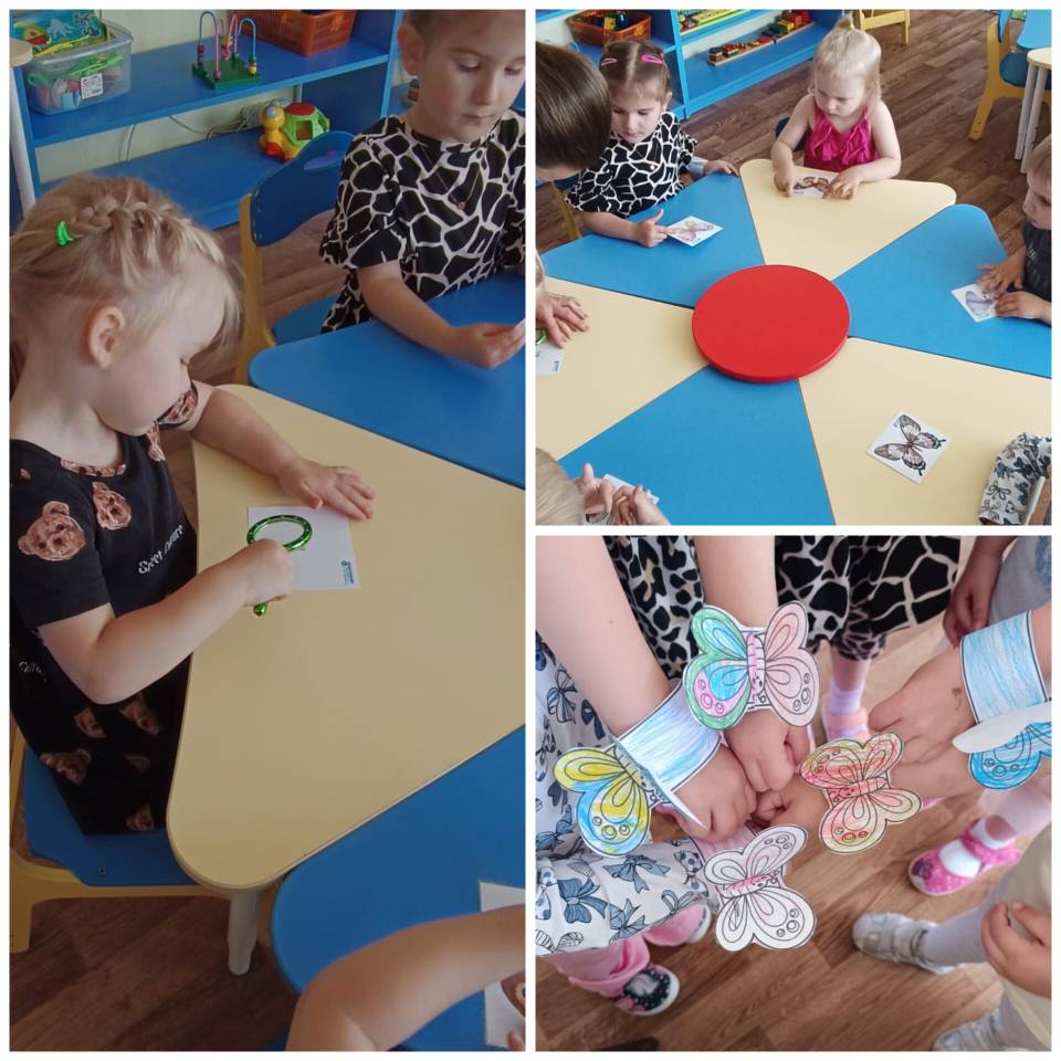 Малыши группы Буратино отправились на поиски пропавших бабочек, с помощью дружбы и увеличительного стекла ребята отыскали всех бабочек!