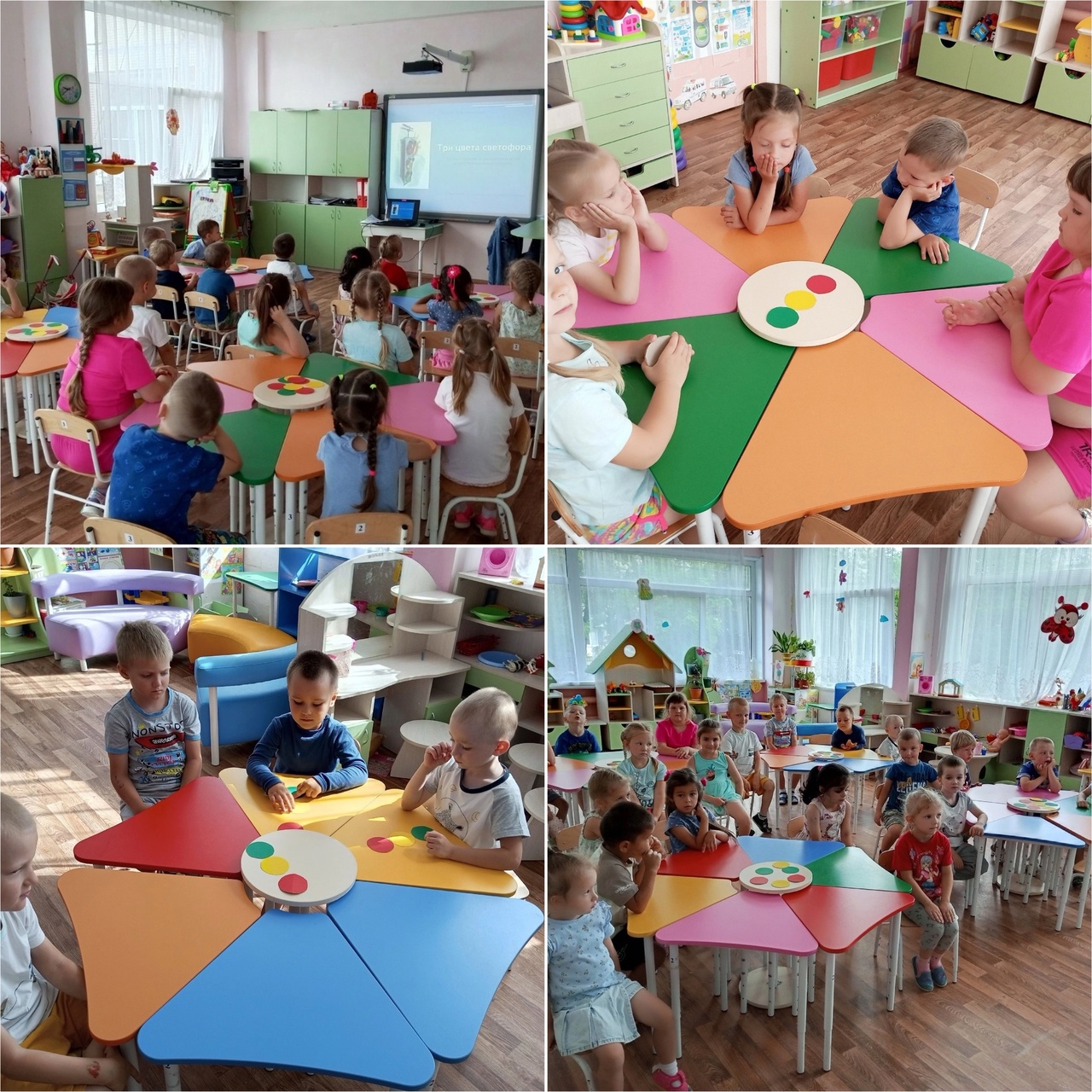 В рамках предупреждения детского травматизма на дорогах в летний период, в нашем детском саду в разновозрастных группах прошла акция «В лето по безопасной дороге». Как всем известно, детям очень нравится переходить дорогу по пешеходному переходу. Малыши внимательно следят за сигналами светофора. Для того чтобы правильно и эффективно научить детей правилам дорожного движения, мы с детьми повторили правила дорожного движения. Ребята с большим интересом рассматривали наглядно -дидактический материал «Три цвета светофора» и выполняли задания светофорчика.